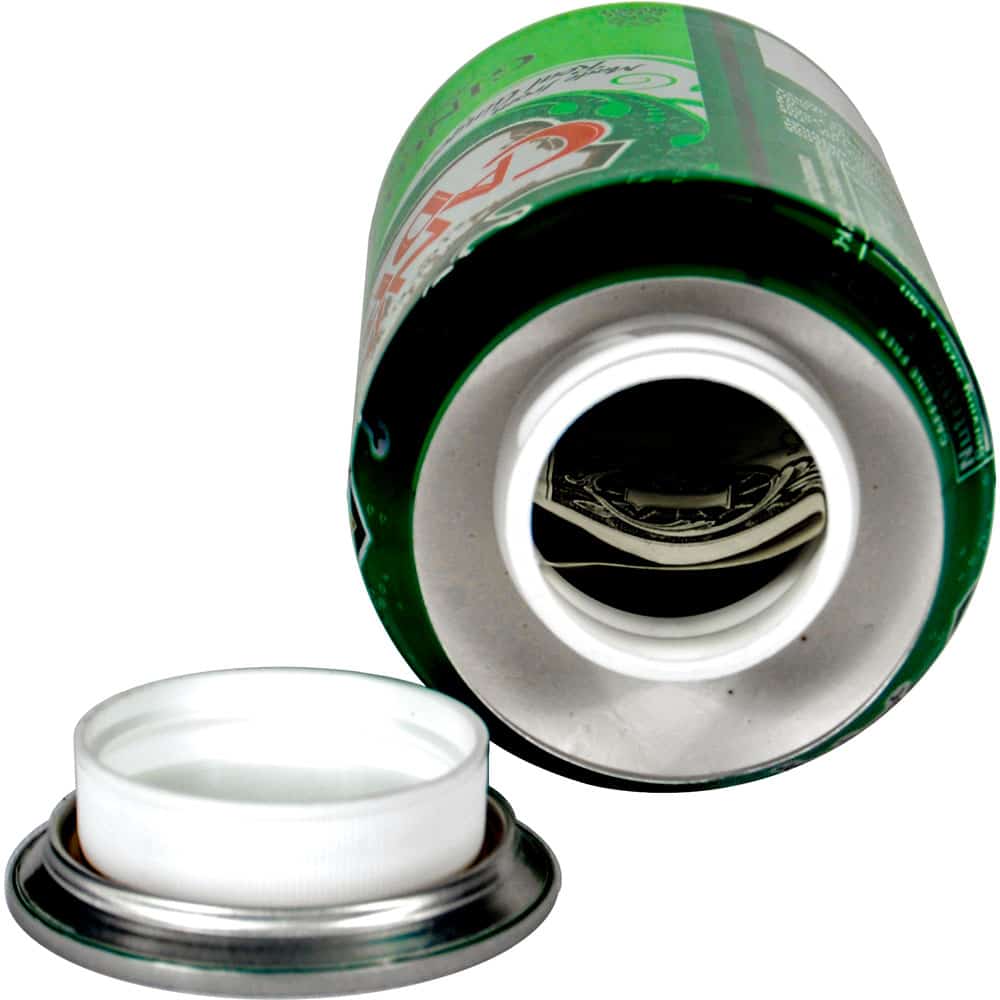 This Ginger Ale Diversion Safe—a clever way to keep your valuables safe and hidden. This discreet safe looks and weighs just like a can of ginger ale, making it ideal for use in your home or as a vacation concealment item. Simply unscrew the top of the can to reveal the secure hidden compartment with an interior of 1" x 3 ½". Perfect for storing jewelry, cash, and important documents, this diversion safe is ideal for homes with kids or pets. Add this disguised safe to your home security collection today!